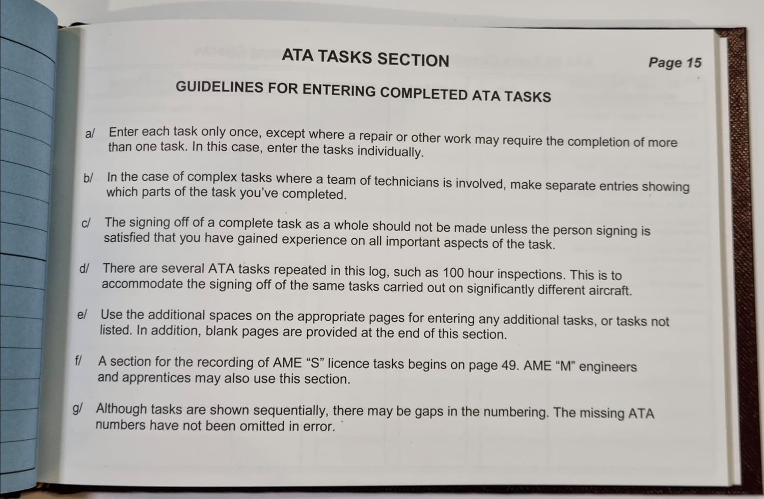 - Durable Construction: Crafted with high-quality materials, this logbook is built to withstand the demanding environment of an AME’s work. The durable cover protects the logbook from wear and tear, ensuring it remains in excellent condition throughout its use.