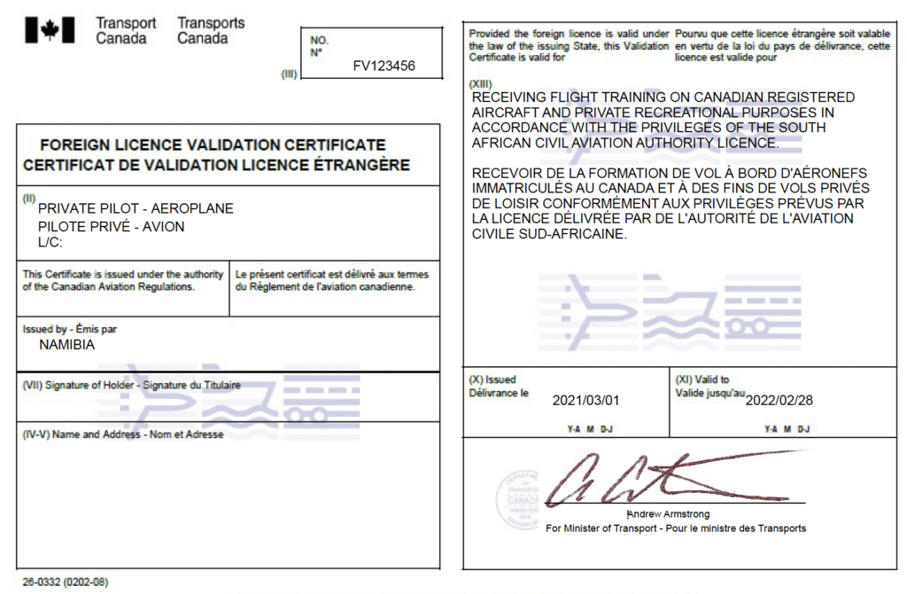 A pilot wishing to obtain a FLVC should apply for the certificate prior to arriving in Canada. Foreign License Certificates are usually only valid for one year. After one year, pilots may apply for another FLVC or attempt to convert their license to a permanent Canadian one as shown below.